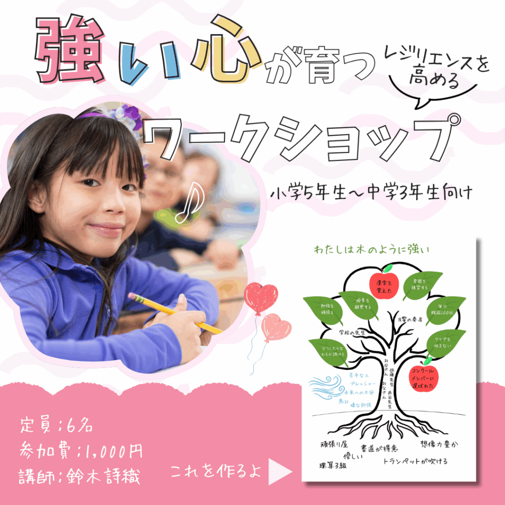 そこで、お子さんがこの大切なレジリエンスを、楽しく、そして確実に手に入れるためのオンラインワークショップを開催します!